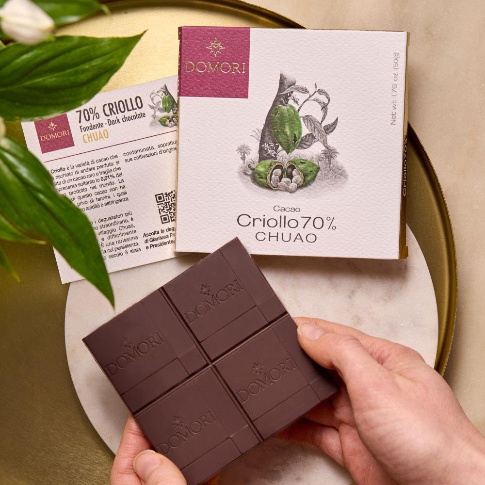 The 50g Chuao Domori bar, produced with 70% cocoa paste and 30% brown sugar, is perfect for those who love sweetness but do not want to exceed in sugar.