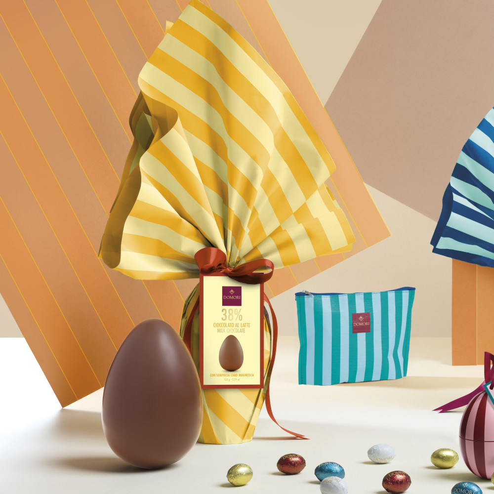 Classic milk chocolate egg with a surprise inside, from the collection "Cabana", a special line that invites you to lose yourself in the luminous shopfronts of an imaginary Riviera.
