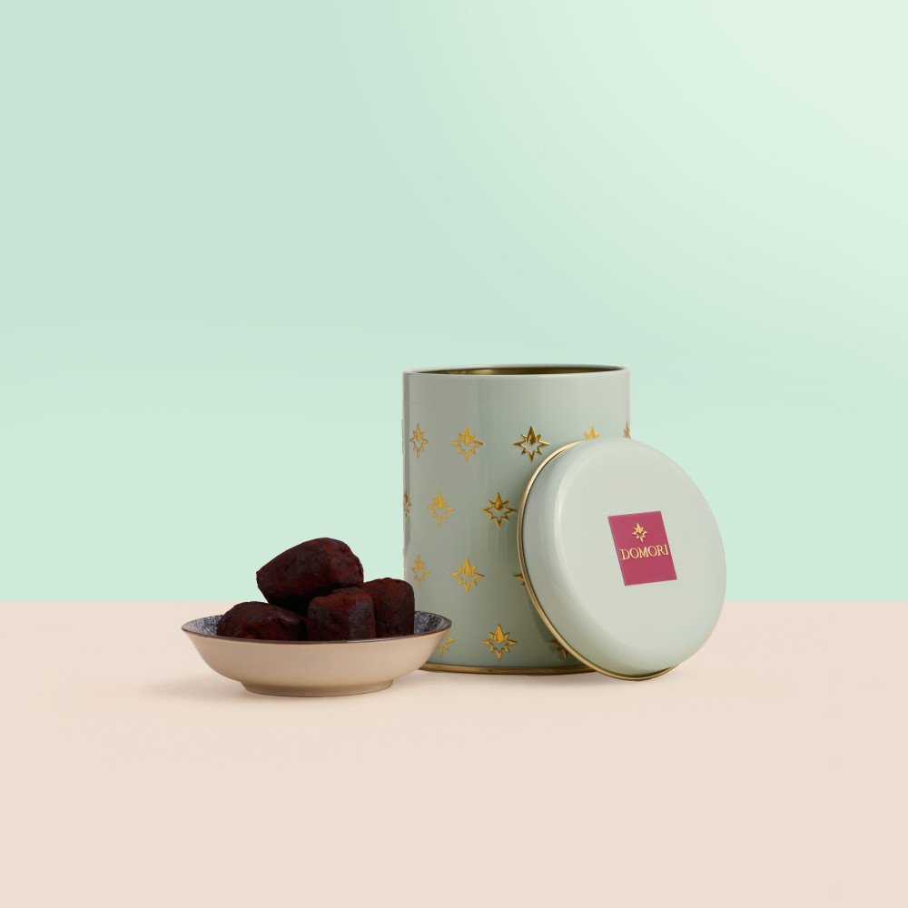 A reusable collector’s tin containing one of our most delicious products: classic hazelnut truffles.