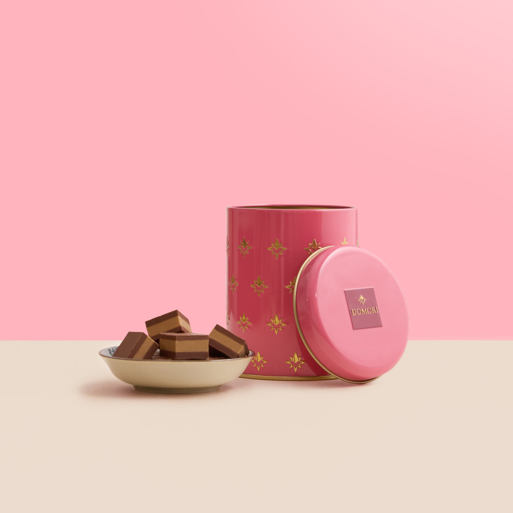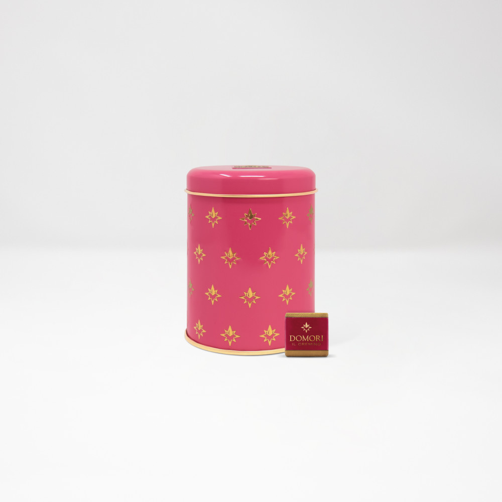 A reusable collector’s tin containing classic cremini with just a pinch of added salt to bring out the aroma of the fine cocoa.