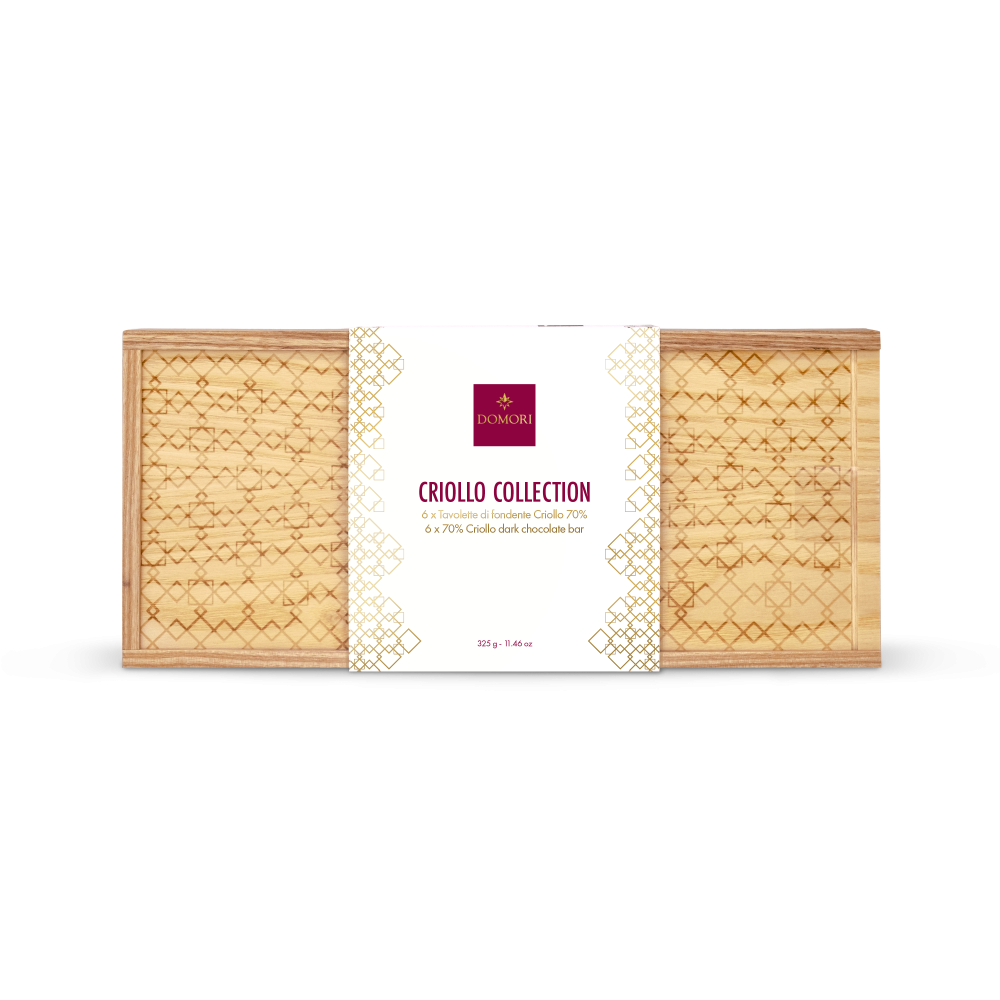 - 2 x 50g Criollo Guasare: a rare variety, considered the mother of all varieties of Criollo, it has been cultivated in the plantation of Domori in Venezuela since 2002. Notes of almond, caramel, ancient rose and cream.