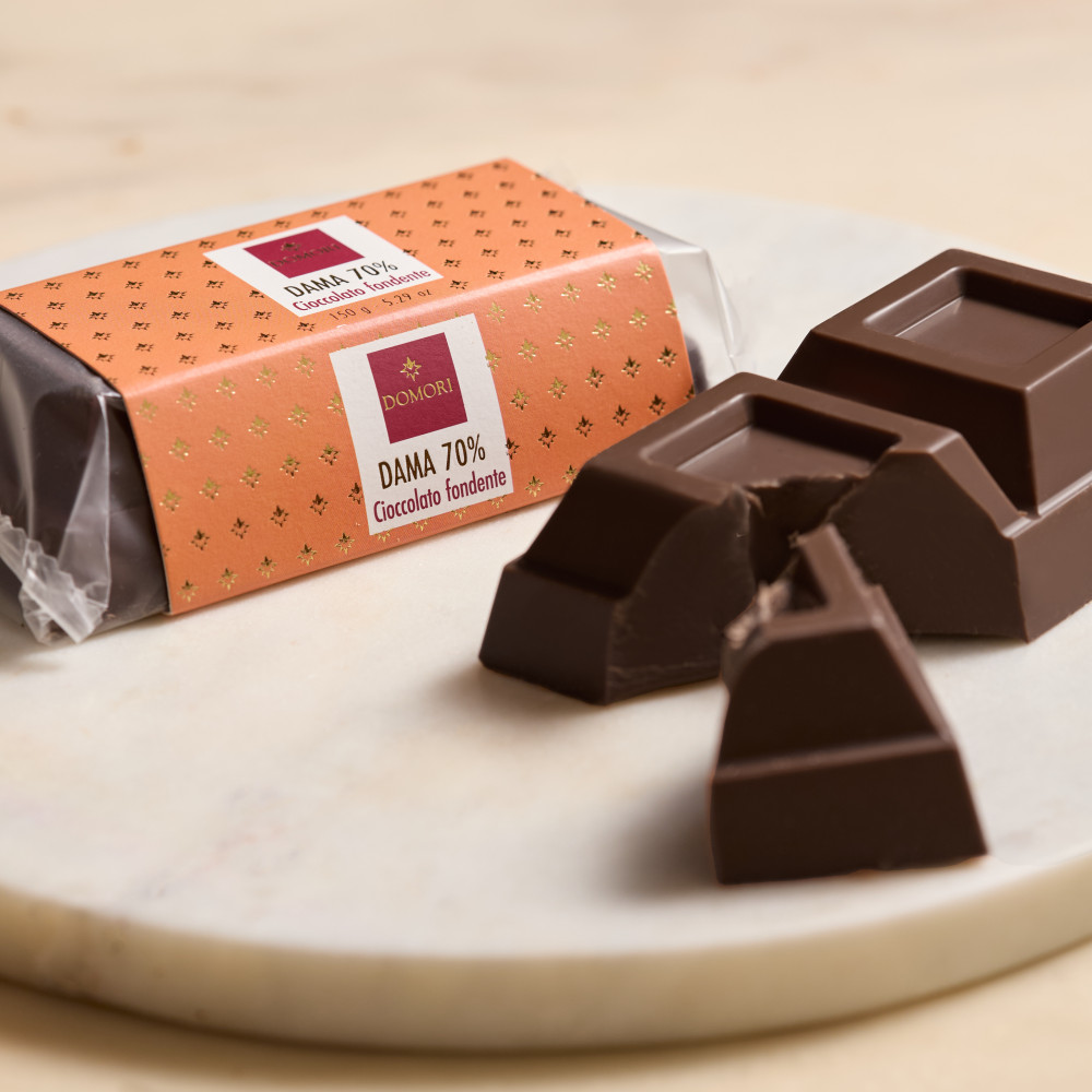 70% dark chocolate damas, ideal for eating at the table, and for preparing desserts in the kitchen.