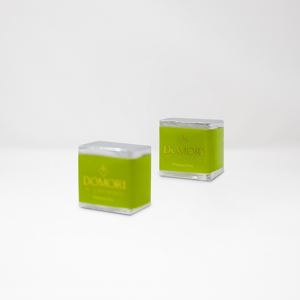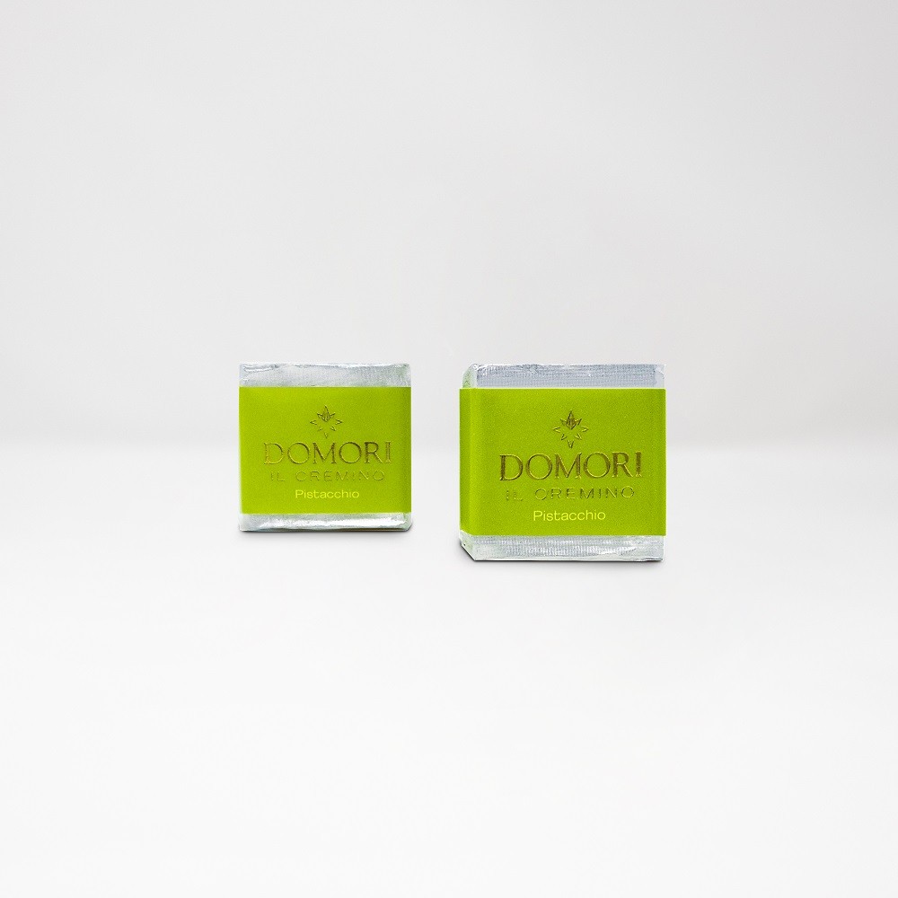 Il cremino incontra il pistacchio in questa creazione Domori, dal gusto tradizionale ed elegante, con un tocco di unicità dato dal cacao fine.