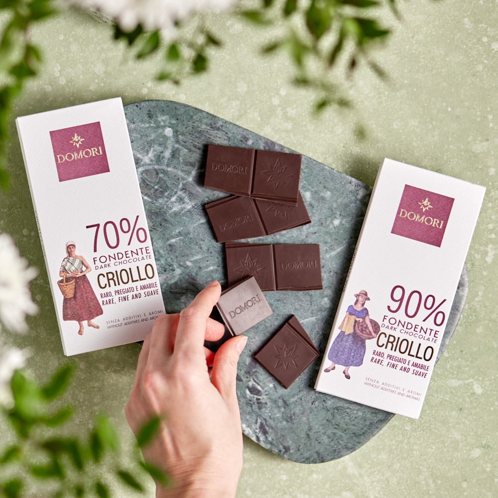 Scopri il nuovo formato della tavoletta Criollo Blend 90%: varietà di cacao sapientemente miscelate per un'esperienza sensoriale unica!