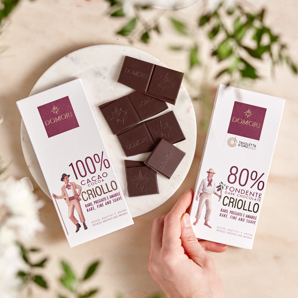 Per chi ama assaporare la vera essenza del cioccolato fondente, ecco la linea Criollo Blend 100%.