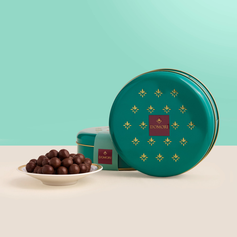 Squisite nocciole ricoperte di cioccolato al latte con alta percentuale di cacao, per esaltare la qualità della materia prima. Confezione in latta riutilizzabile.