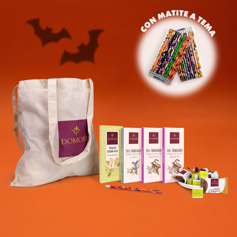 E' l'ora del "dolcetto o "scherzetto?" Con questo kit potrete festeggiare gustando alcune delle fantastiche prelibatezze di Domori, limitando gli sprechi! Anche se prossimi alla scadenza, la qualità dei nostri prodotti è sempre garantita!