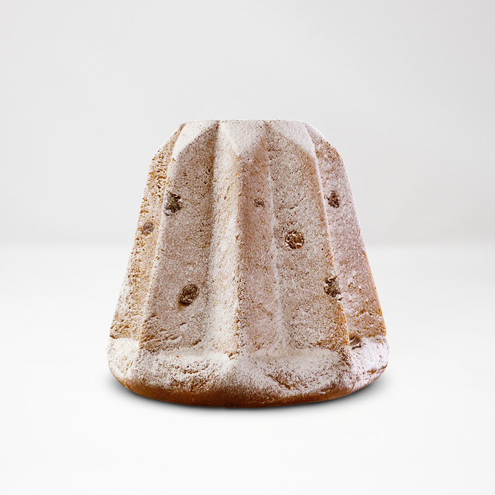 Il soffice Pandoro lievitato naturalmente si arricchisce con gocce di cioccolato fondente e al latte per soddisfare anche i palati più golosi.
