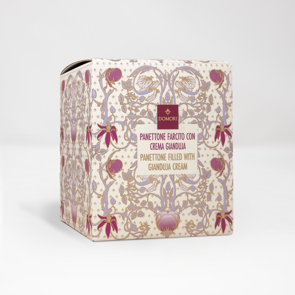 Un Panettone per omaggiare il Piemonte e la sua tradizione cioccolatiera: morbida impasto farcito con la golosa crema gianduja Domori.