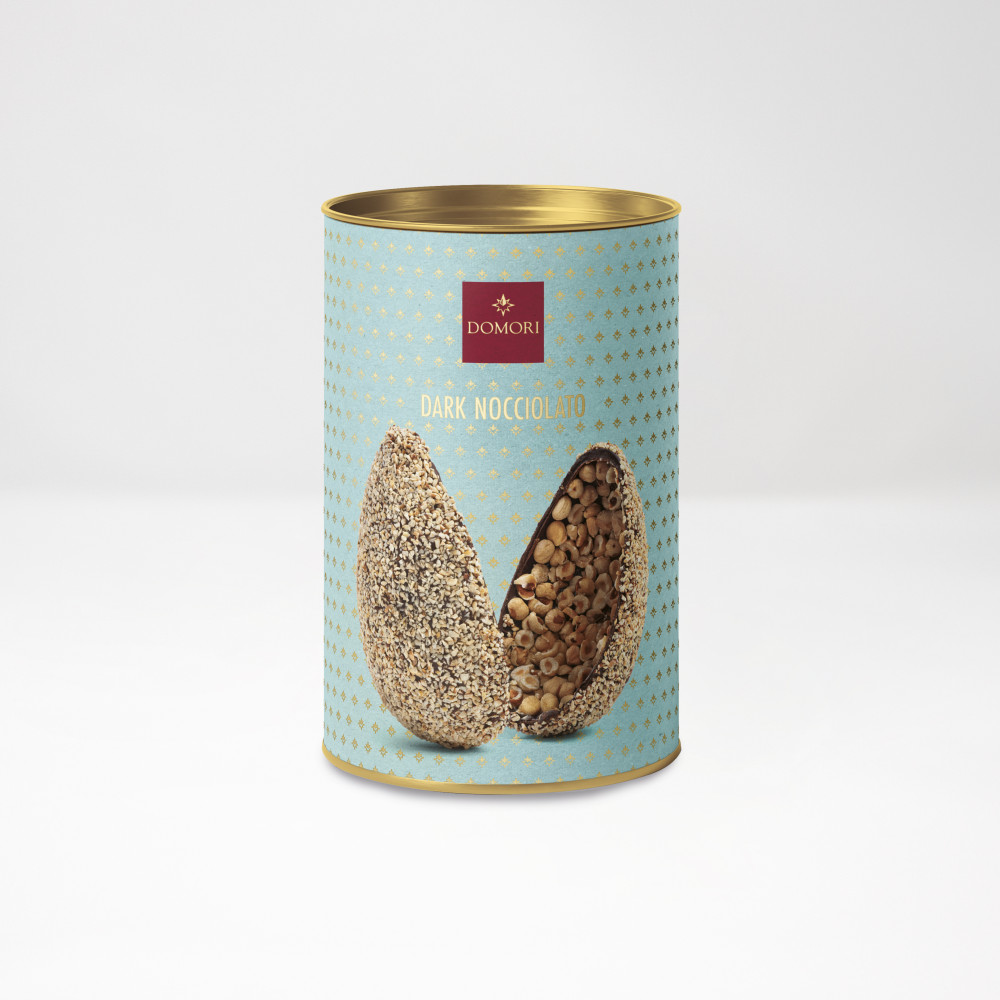 Uovo Dark Nocciolato - 60% Cioccolato Fondente Ricoperto di Granella di Nocciole con all'interno mezze Nocciole - 430g